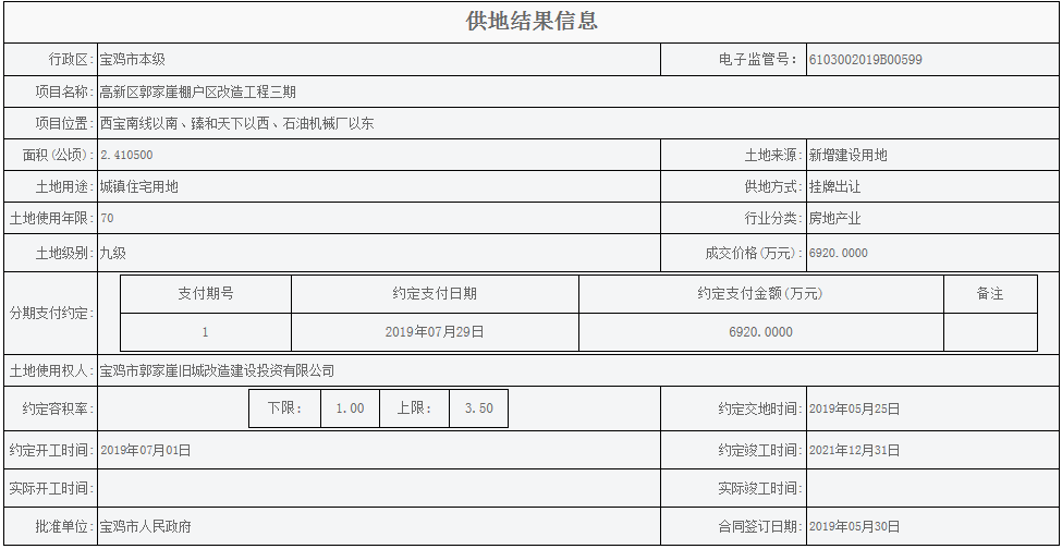 宝鸡市本级:项目名称: 高新区郭家崖棚户区改造工程三期