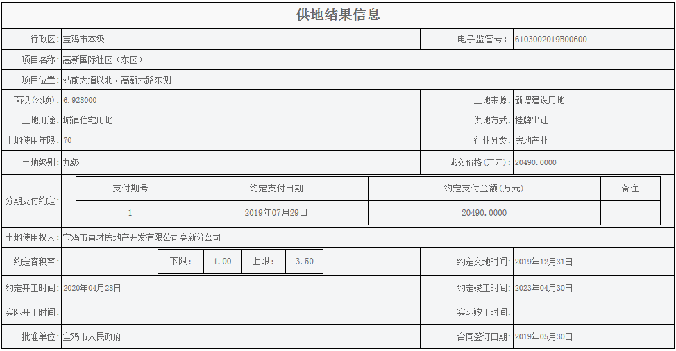 宝鸡市本级:项目名称: 高新国际社区(东区)