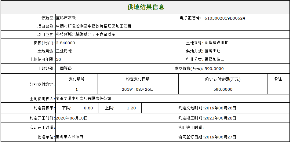 宝鸡市本级:项目名称: 中药材研发检测及中药饮片精细深加工项目