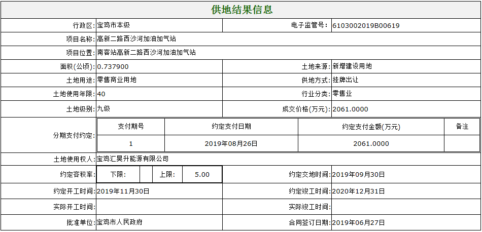 宝鸡市本级:项目名称: 高新二路西沙河加油加气站