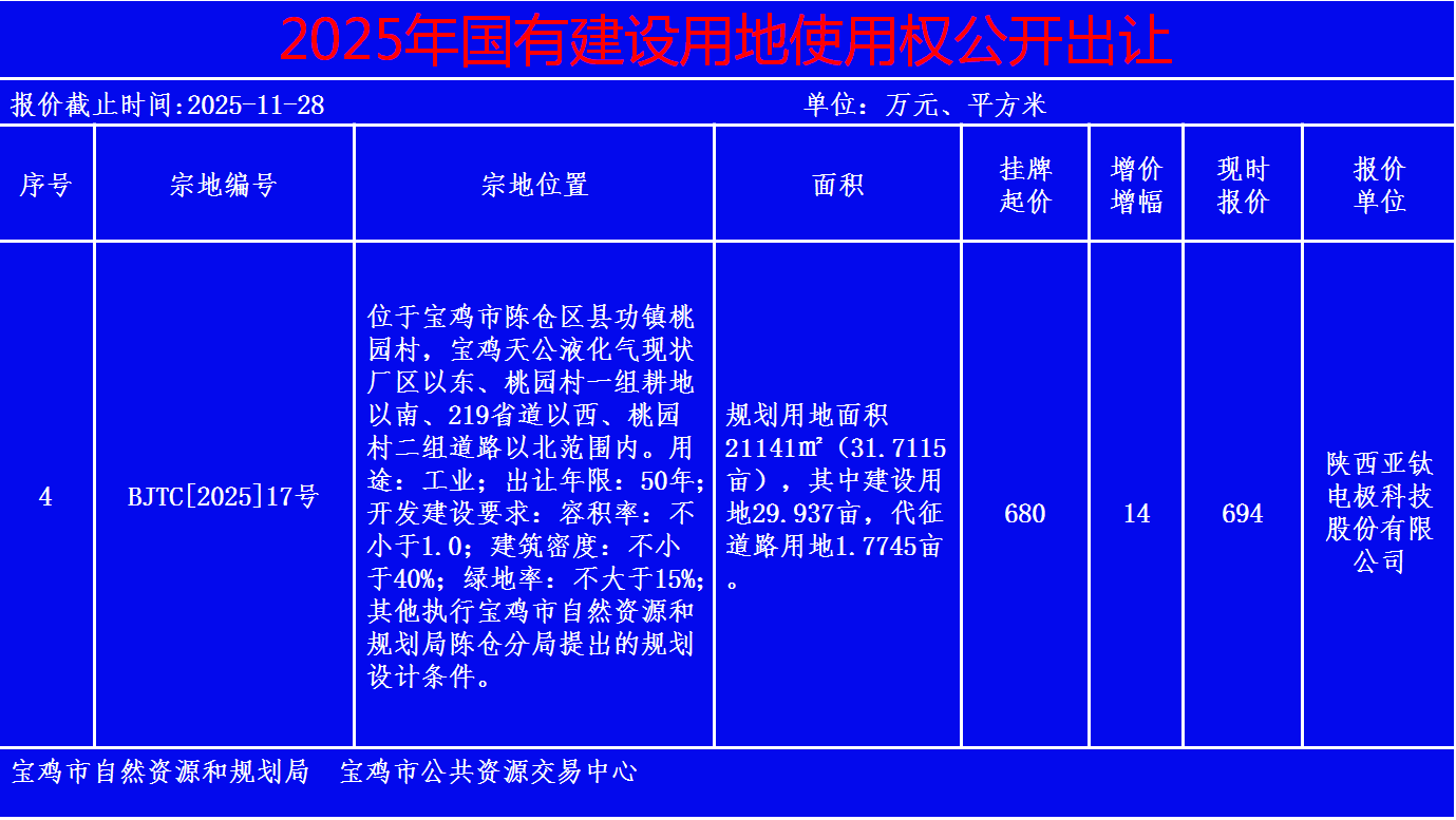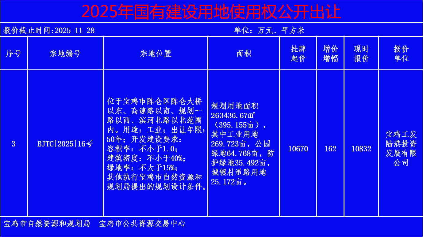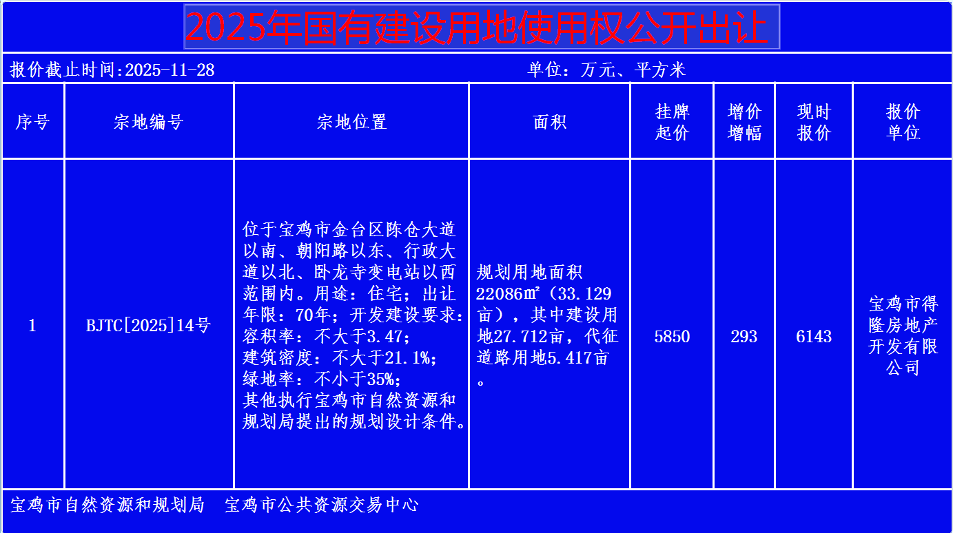 2025年国有建设用地使用权公开出让