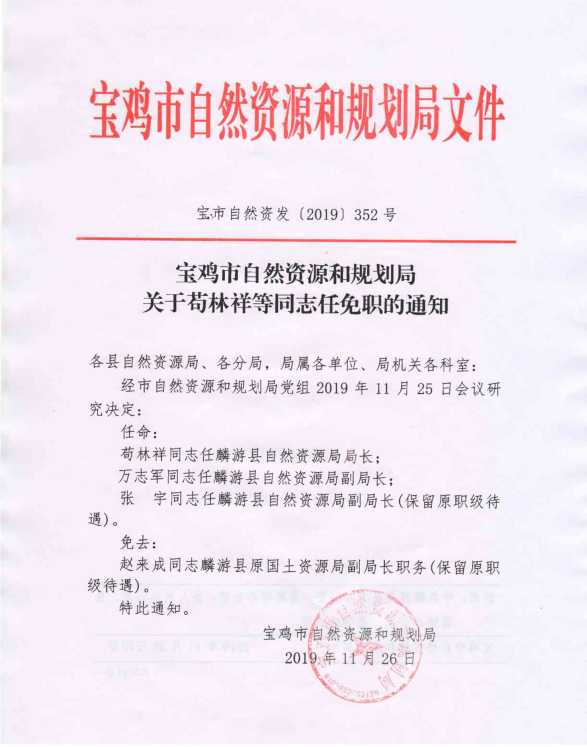宝鸡市自然资源和规划局关于苟林祥等同志任免职的通知