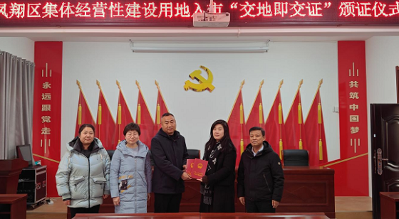 1月16日,宝鸡市凤翔不动产登记中心为宝鸡市景华农林科技开发有限公司颁发农村集体经营性建设用地入市不动产权证书,实现全市首宗农村集体经营性建设用地入市“交地即交证”。