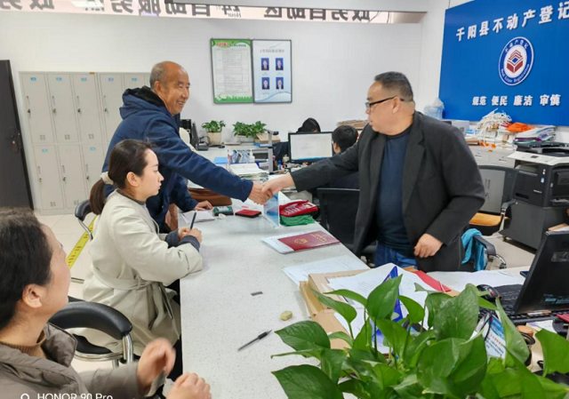 前一阵子,吕先生来到千阳县不动产登记中心申请办理不动产继承登记业务。工作人员一次性告知办理流程和所需材料后,吕先生与家人一起前来提交相关材料,工作人员核验相关证明材料后,悉心指导吕先生现场签署继承协议、询问笔录,确保了继承问询办理流程严谨、准确、高效。在公示期满后,吕先生在县不动产登记中心窗口办理了继承不动产过户登记,当天就领取到了不动产权证书。
